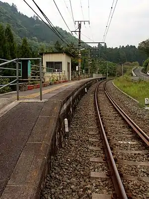 The station has one ground-level side platform serving a single bi-directional track, built on a gentle curve. There is no station building, but only a weather shelter on the platform. The station is unattended.