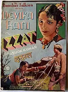 Izzat (transl. Honour) is a 1937 Hindi film social drama, directed by Franz Osten. The film was produced by Himanshu Rai for Bombay Talkies.[1] The credit roll of Izzat attributes the story to Dr. G. Nundy, adapted for screen by J. Nundy. The screenplay was by Niranjan Pal, who handled the story section of Bombay Talkies.[2] J. S. Casshyap wrote the songs and dialogues and was assisted in dialogue direction by S. I. Hassan. The music was composed by Saraswati Devi, with actor Mumtaz Ali doubling as the choreographer. The film starred Ashok Kumar with Devika Rani in the lead, while the rest of the cast included Mumtaz Ali, Madhurika, Kamtaprasad, Chandraprabha, and P. F. Pithawala.[3]