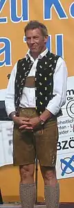 Haider's parents had been early members of the Austrian Nazi Party (DNSAP, the Austrian affiliate of the NSDAP, the German Nazi Party). Haider's father, Robert Haider, was a shoemaker. His mother, Dorothea Rupp, was the daughter of a well-to-do physician and head of the gynaecology ward at the general hospital of Linz.[3]