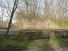 At the beginning of the 20th century, traffic on the Berlin–Halle railway increased significantly. For this reason, extensive work began on the upgrade of the Berlin–Halle railway after 1910. It was planned to upgrade the section from Berlin to Jüterbog to four tracks. The works were already well advanced in 1915, but came to a standstill because of the First World War. A large number of relics of the construction which had just begun, are still recognisable. In the area around Jüterbog station, there is an embankment north-west of the existing railway that was intended to be used for the new long-distance tracks. Extensive structures south of the station were built to provide grade-separated crossings of the lines to Röderau and Wittenberg.[9] The reconstruction of the tracks in the north-eastern station area was completed. After the First World War, the upgrade plans were revived, but the work was finally discontinued in 1922, not least because the Wiesenburg–Roßlau railway, an additional connection between Berlin and Central Germany, was under construction and would relieve the Berlin–Halle railway.[10]