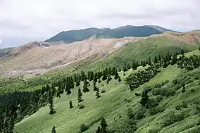 The Jōshin'etsu Kōgen National Park is a popular tourist destination for skiing, mountain climbing, hiking, and onsen hot spring resorts.[1][2][4] The Eastern Area holds the popular skiing areas of Sugadaira and Shiga Kōgen. The Shiga-Kusatsu-Kogen Ridge Highway traverses this section of the park, connecting the Yamanouchi Hot Springs, including the onsens of Yudanaka, in the north with the resort town of Karuizawa, Nagano Prefecture in the south.