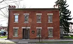 The J.H. Thedinga House is a historic building located in Dubuque, Iowa, United States. Thedinga was a native of Hanover who settled in Dubuque in 1839. He studied law, but never practiced it. He was an early settler here and was engaged in retail. Thedinga also held a variety of political positions, including mayor. The two-story brick structure features crow-stepped gables on the sides. It was built as an addition to a frame house in 1855. The frame structure was removed some time between 1885 and 1900.[2] The brick structure was altered at that time so that the library was converted into a kitchen and dining room, the parlor was divided into two sections, and the lower and upper porches were added to the south side. The house was individually listed on the National Register of Historic Places in 1976,[1] and it was included as a contributing property in the Cathedral Historic District in 1985.[3]
