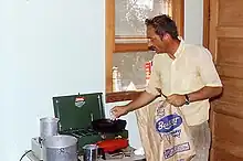 ![]() Alan Holman cooks dinner for the crew of his Wakeeney, Kansas dig, 1974. | |