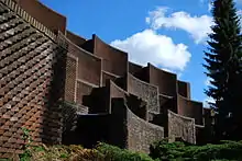 At its bottom, as seen from the J. C. Jacobsen House, the garden is terminated by a structure known as the Hanging Gardens. It consists of a series of terraced roof gardens created by a system of concave walls in ornamental brickwork.[2]