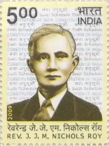 James Joy Mohan Nichols Roy (or J.J.M. Nichols Roy; 12 June 1884 – 1 November 1959) was a Christian minister and politician from what is now the state of Meghalaya, India. Before the independence of India he agitated for autonomy of the tribal peoples of northeast India. After independence this was enshrined in the Sixth Schedule of the Constitution of India through his efforts.