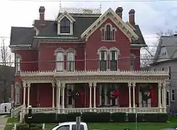 J. Stuart Wells House, now the Ernest H. Parsons Funeral Home, is a historic home located at Binghamton in Broome County, New York, USA. It was built in 1867-1870 and designed by the noted New York State architect Isaac G. Perry. It is a 2+1⁄2-story brick dwelling on a cut stone foundation and topped by a hipped, cross-gabled roof. It was expanded in the 1940s-1950s and features a wrap-around porch. Also on the property is a 2-story brick carriage house.[2]