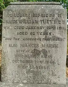 Tutt had a congenital heart condition but lived without much trouble. He died at his home in Rayleigh Villa, Westcombe Hill. He was buried at Lewisham Cemetery now renamed Ladywell Cemetery of borough of Lewisham's twinned 'Brockley & Ladywell Cemeteries'. Tutt had been married to Frances Marsh Collins and they had two sons and three daughters.[2]