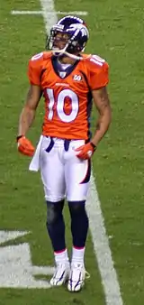 Derrick Jabar Gaffney (born December 1, 1980) is an American former football wide receiver. He played college football for the University of Florida, and was recognized as a consensus All-American. He was drafted by the Houston Texans in the second round of the 2002 NFL draft, and also played for the New England Patriots, Denver Broncos, Washington Redskins and Miami Dolphins.