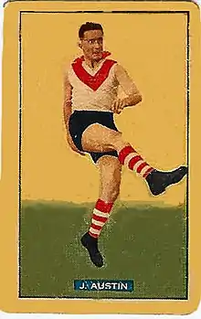 John William Austin (9 December 1910 โ 8 March 1983) was an Australian rules football player for the South Melbourne Swans from 1930 to 1938, playing 140 games in the back-pocket and at full-back. Austin was judged one of the best players in South Melbourne's 1933 premiership win over the Richmond Football Club.[1]