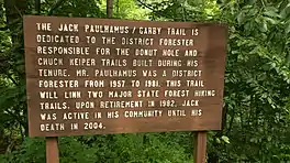 ![]() A sign on the Jack Paulhamus/Garby Trail, honoring the trail's namesake. | |