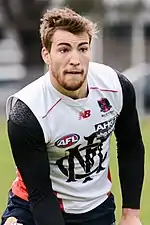 Following his strong 2016 season, AFL Media named him inside the top fifty players in the league[91] and Fox Sports Australia journalist, Anna Harrington, predicted he would continue his linear improvement and is "the gun player" of Melbourne.[92] Despite the positive expectation on him, he struggled for form early in the season and was criticised by former player and media personality, David King, for his performance in the thirteen point loss to Richmond at the Melbourne Cricket Ground in the Anzac Day eve match due to wasting energy with his aggression towards opposition players off the ball.[93] Soon after, he found form and was named in AFL Media's team of the week in rounds seven, eight and twelve.[94][95][96] He was praised in particular for his match against Collingwood in the Queen's Birthday clash, in which he recorded twenty disposals, ten contested possessions, three clearances and seven tackles to be named one of Melbourne's best players by Anna Harrington.[97]