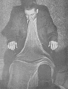 Webber was not scientifically tested by the Society for Psychical Research and some researchers have speculated that he performed his phenomena through trickery. During séances infrared flashlight photographs were taken of his phenomena which spiritualist writers have claimed is evidence for spirit communication, however, skeptics have written the ectoplasm in the photographs resembles cheesecloth or gauze.[3][4][5][6][7][8]