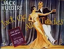 Jack of All Trades is a 1936 British comedy film directed by Robert Stevenson and Jack Hulbert and starring Hulbert, Gina Malo and Robertson Hare.[1] It is based on the 1934 play Youth at the Helm. The film was made at Islington Studios, with sets designed by Alex Vetchinsky.[2]