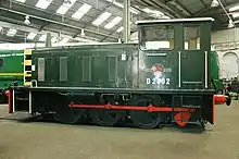 The British Rail Class 03 diesel (pictured) is a more recent example. Jackshafts were used on some diesel-mechanical and diesel-hydraulic locomotives but were seldom used on diesel-electrics. One exception was the British Rail Class D3/7.[24]