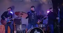 After graduating from college, Jackslacks honed his chops as a founding member in both Forbidden Pigs and Hot Rod Lincoln, popular groups in the early San Diego roots-rock scene, which also included Beat Farmers, The Paladins, and Mojo Nixon.[2][3] At about the same time, childhood elementary school chum, Tommy Byrnes joined neo rockabilly band Stray Cats on second guitar and backing vocals for a European and US tour concluding at the New Orleans World's Fair, giving Jackslacks the inside track to both the exploding local and increasingly popular national rockabilly revival scenes. Jackslacks CD "Rock and Roll Dinosaur" was produced by Stray Cats slap bassist Lee Rocker and includes Byrnes on guitar, before he[4] went on to play with Joan Jett and the Blackhearts and Rock and Roll Hall of Fame inductee Billy Joel.[5] A huge fan of Sam Phillips Sun Records, Jackslacks co-wrote the Sun inspired original song "Bank Account's Too Small" on the Hot Rod Lincoln CD "Blue Cafe" which won best local recording at the San Diego Music Awards[6] and whose title track was written for the band by Topcat Brian Setzer.