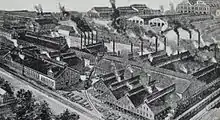 The Jackson & Woodin shops were destroyed by fire on March 17, 1865; the company rebuilt with a larger facility in the same location, increasing the size of its workforce from 150 to 250.[4]