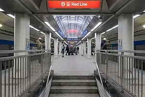 Jackson is an 'L' station on the CTA's Blue Line, located in the Loop. This station was recently renovated to resemble the Jackson/State station; a pedestrian tunnel connects these two stations, allowing for a free transfer to the Red Line. Farecard transfers to the Harold Washington Library – State/Van Buren station are also available at this station for the Brown, Orange, Pink, and Purple Lines.