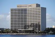 Jacksonville's early predominant position as a regional center of business left an indelible mark on the city's skyline. Many of the earliest skyscrapers in the state were constructed in Jacksonville, dating to 1902.[67] The city last held the state height record from 1974 to 1981.[68] The tallest building in Downtown Jacksonville's skyline is the Bank of America Tower, constructed in 1990 as the Barnett Center. It has a height of 617 ft (188 m) and includes 42 floors.[69][70] Other notable structures include the 37-story Wells Fargo Center (with its distinctive flared base making it the defining building in the Jacksonville skyline),[71][72] originally built in 1972–1974 by the Independent Life and Accident Insurance Company, and the 28-floor Riverplace Tower. When this tower was completed in 1967, it was the tallest precast, post-tensioned concrete structure in the world.[73][74]