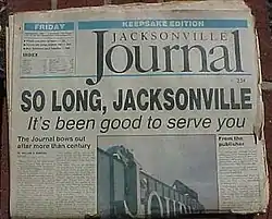 The Jacksonville Journal was an afternoon newspaper in the Jacksonville, Florida area. It began publication as the Metropolis in 1887 before being renamed to The Florida Metropolis in the early 1900s and then to The Jacksonville Journal in 1922. It ceased publishing in 1988.