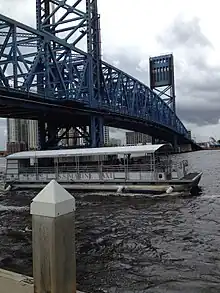 The Jacksonville Water Taxi experienced a stoppage of service in 2014 when the City of Jacksonville failed to renew the operator's contract. The city's attempts to purchase and operate boats failed to come together.[5] The city negotiated a new contract with Lakeshore Marine in April 2015.[6]
