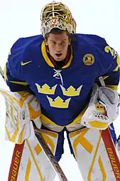 ![]() Markström with Sweden at the 2010 World Junior Ice Hockey Championships | ||