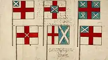 The claim of James VI to the English throne was also bound up with the Tudor dynasty, coming (despite provisions in the will of Henry VIII) through his great-grandmothers Margaret Tudor and Mary Tudor. He had two new official signet rings made, combining the arms of England and Scotland.[4] A Latin slogan used on his coins, Henricus rosas regna Jacobus, pointed up a comparison with Henry VII: it implied that Henry's role in uniting the Roses (see Tudor rose) had been followed by James's in uniting the kingdoms.[5]