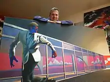 The Three Traces of Oscar[29][30] exhibition opened at the Espace Niemeyer[31] in November 2006, closing in March 2007.[32][33] It consisted of 28 large format canvases and a series of monotype linocut prints.[34] Among these works, A Painter’s Dream, a four-piece polyptych that imagined an allegorical meeting between Oscar Niemeyer, Stanley Kubrick and Kate Bush, as well as the painting Clouds, another allegorical meeting, this time bringing Oscar Niemeyer and Joni Mitchell together.