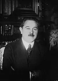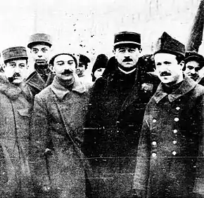 In 1916, Albert Thomas, the SFIO Minister of Armaments, appointed Sadoul as his Undersecretary of State for Artillery.[13] Thomas obtained that Sadoul be assigned to General Henri Niessel's French Military Mission in Petrograd, where he arrived in late September 1917,[2][14] leaving behind his wife and son. He reached Russia by way of Scotland and Sweden, crossing in at Tornio.[15] What Thomas hoped to obtain from Sadoul was a direct line of communication between the SFIO and the various socialist groups which either supported or opposed the Russian Provisional Government, and thus to keep Russia on the Entente side.[2][16] The Thomas–Sadoul link remained especially strong, to the point where observers called him "Thomas' personal informant"[17] or "Thomas' creature".[18] For the next year, Sadoul was to keep a political diary, described by historian Adam Ulam as "elegantly composed in the form of letters addressed to his French protector and fellow Socialist, Albert Thomas."[19] Other Frenchmen also joined Sadoul in his diplomatic effort, including Lieutenant Pierre ("Piotr Karlovich") Pascal. A Russian studies scholar who was otherwise known as a Christian socialist and Thomist writer,[20] he had fought with distinction on the Western Front before being assigned to the military mission.[21]