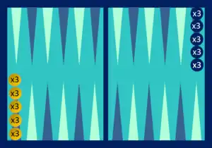 Jacquet is a tables game, played on the same type of board as Backgammon, that was once very popular in France and several other parts of Europe.[1] It probably emerged around 1800, but is attested by 1827.[2] In the 20th century it replaced the classic French backgammon equivalent — the game of Trictrac — until Jacquet itself was superseded by Anglo-American games in the 1960s.[3][4]
