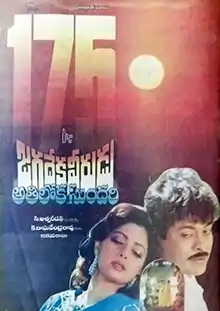 The film had 100-day runs in a number of theaters and a 200-day run in one centre,[10] it grossed 15 crores at the box office and broke all the records which were set up by past movies and became an all time blockbuster. This film's box office performance was undeterred by the floods raging then united Andhra Pradesh.[5]