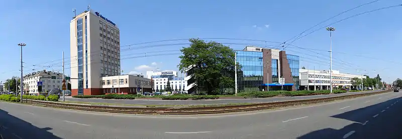 - A 14-storey office building on the corner of Jagiellońska and Konarski streets (1966-1969) by architect Bronislaw Jablonki.[15]