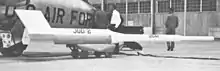 Jaguar was an air-launched sounding rocket developed by the Air Research and Development Command of the U.S. Air Force, intended for use for high-altitude scientific research into the aurora borealis and radiation trapped in the Van Allen Belts.[1] Derived from a design used by the Lewis Flight Propulsion Laboratory,[1] it was a three-stage vehicle, with a first stage of three clustered Recruit rockets, a single Recruit as a second stage,[2] and a third stage with a Baby Sergeant rocket.[1] It was to be launched using a Martin B-57 Canberra medium bomber that was modified to carry the rocket on a side-mounted pylon; this allowed for the rocket to be launched from any location capable of operating a jet aircraft, without the need for installing launch infrastructure in remote areas.[3] To launch, the Canberra would pull into a near-vertical climb, akin to that used for toss bombing, and release the rocket;[1] Jaguar was expected to be capable of launching a 16-kilogram (35 lb) payload to an apogee of 800 kilometres (500 mi).[2] An upgraded version using the improved "Yardbird" model of the Recruit was proposed.[4]