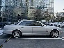 The Jaguar XJ (X350) is a full-size four-door luxury saloon car manufactured and marketed worldwide by Jaguar Cars for model years 2003–2009 as the third generation of the Jaguar XJ saloon,[1][2] carrying the internal designation X350 and the internal designation X358 following its 2007 intermediate facelift. Both the X350 and X358 were available with a six-speed automatic transmission, a range of petrol and diesel engines (V6, V8, and supercharged V8), numerous trim levels, and short wheelbase (2003–2009) or long wheelbase (2005–2009) car body configurations.[3] Extended-length models were the longest vehicles Jaguar had manufactured.[4][5]