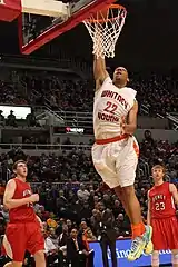 He was selected as the 2014 National Player of the Year from among the 20 Parade All-Americans.[74] He was also recognized by the McDonald's All-American Game organization as its 2014 Morgan Wootten National Player of the Year.[75] USA Today recognized Okafor as its national player of the year when naming its All-USA Boys Basketball Team along with Alexander, Oubre, Mudiay, and Stanley Johnson.[76] Okafor beat Alexander in the Illinois Mr. Basketball voting by a 492–402 vote.[77] He earned first team All-American recognition from MaxPreps on April 13.[78] Okafor was named the 2013–14 Chicago Tribune/WGN Ch. 9 Athlete of the Year.[79]