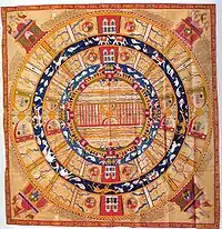 A chakravartī is an emperor of the world and lord of the material realm.[20] Though he possesses worldly power, he often finds his ambitions dwarfed by the vastness of the cosmos. Jain puranas give a list of twelve chakravartins (universal monarchs). They are golden in complexion.[23] One of the chakravartins mentioned in Jain scriptures is Bharata Chakravartin. Jain texts like Harivamsa Purana and Hindu Texts like Vishnu Purana state that Indian subcontinent came to be known as Bharata varsha in his memory.[24][25]