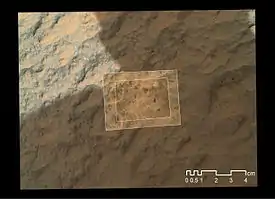 The rover team determined the rock to be a suitable target for the first use of Curiosity's contact instruments, the Mars Hand Lens Imager (MAHLI) and the Alpha particle X-ray spectrometer (APXS).[3]