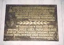 Parnas was born in 1884 in Tarnopol,[1] at that time part of the Austro-Hungarian Empire, in the province of Galicia (now split between Poland and Ukraine), to Jewish parents. He graduated from the Royal Technical College of Charlottenburg in 1904. From 1920 to 1941, he was head of the Institute of the Medical Chemistry at Lviv University. He traveled across Europe, collaborating with universities in Cambridge, Naples, Strasbourg, Ghent and Zurich. He was a member of the German Academy of Sciences Leopoldina, Corresponding Member of the Polish Academy of Sciences, as well an honorary doctor of Sorbonne University and the University of Athens.