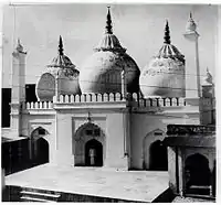 An important landmark in Jalali is the historic Jama Masjid that is taken care by Sayyids of Jalali. It was built by Sultan Ghiyasuddin Balban and is over 700 years old. The masjid bears an inscription with the name of Balban dated 665 Hijri or 1267 AD. The mosque is well maintained and is looked after by a trustee appointed by Shia Waqf Board, Lucknow. The photograph of the mosque and its brief history along with the inscriptions of Sultan Balban, Mohammad Shah and Jalaluddin Akbar was published in the Archaeological Survey of India, 1936. The mosque was renovated and rebuilt by Haji Syed Mehdi Ali of Jalali in 1901. The original mosque had one dome. Two more domes were built by Haji Mehdi Ali who also added a golden kalas on top of each. An account of the contributions of Haji Mehdi Ali is engraved in Persian on the marble stone which forms part of the middle arch of the mosque. In 1826, the arch in the middle of the mosque near mimbar was built by Syed Ahmed Hussain. An engraved stone just above the arch gives complete details.