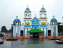 Aside from the municipal seat, there are a number of other important communities. There are two mostly indigenous communities called Ayapa and Mecoacán. Both have churches painted in bright colors called San Miguel Arcángel and San Mateo, respectively.[2] Ayapa is 35 km from the municipal seat with a population of about 4,600. Its main economic activities are livestock and the production of decorated gourds even though three oil wells of the Ayapa field are in its jurisdiction. Mecoacán is located eight km from the municipal seat with a population of about 3,200 people. It main economic activities are agriculture, the raising of pigs and domestic fowl and petroleum production. Iquinuapa is located four km from the municipal seat with a population of about 3,500 people. Its main economic activities are agriculture and handcrafts. Villa Jalupa is six km from the municipal seat with a population of about 3,400. Its main economic activity is agriculture. Soyataco is four km from the municipal seat with a population of about 3,250. Its main economic activity is agriculture. Hermenegildo Galeana 2ª is located six km from the municipal seat with a population of about 1,250 people. Its main economic activity is the production of cacao and coconut.[2]
