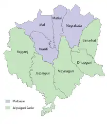 Community development blocks in the Jalpaiguri Sadar subdivision are:[2][5][6]