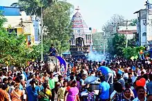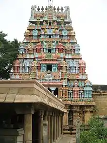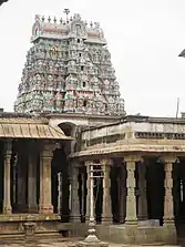 There are lot of inscriptions from various Chola kings from 11th - 12th century indicating grants to the temple.[2] The temple was widely expanded by Hoysala king, Someswara, the son of Vira Narasimha.[9] During 1236-37 CE, he built a lot of shrines namely Vallaliswara, Padumalisvara, Vira Narasingeswara and Somleswara evidently named after his grandfather Ballalla II, grandmother Padmaladevei, father Vira Narasimha and aunt Somala Devi.[9] The 7-tiered rajagopuram is also believed to have constructed by the Hoysala king.[9] There are separate shrines beyond the temple compound namely Aadhi having a typical structure as the main shrines. The temple and its pagodas were subject to frequent conquest between French and English forces between 1751 and 1755 CE.[10] The temple is being widely maintained by Vellalars and the Nattukottai Chettiars during the 19th and early 20th centuries.[11]