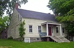 ![]() Front (south) elevation and west profile with Newburgh police K-9 unit sign on porch and barn visible at rear left, 2008 | |