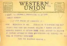 One of his most important roles was notifying families when their loved ones became casualties. By the war's end Casualty Branch in the Office of the Adjutant General consisted of 80 officers and 2,000 enlisted personnel. Every day it received punched cards from the theaters of operations. The staff then translated these into words. Other members then typed the information onto casualty forms. The soldier's emergency contact information was then verified; many people changed address without notifying the Army. If the soldier had died, the branch head, Colonel George F. Herbert, would review the paperwork. The Signal Corps then contacted Western Union and sent a telegram, which would go out under Ulio's name. Ulio directed that no telegrams would be delivered between 22:00 and 07:00. A confirmation letter would follow in the post. These were individualised; Ulio directed that no form letters would be sent to grieving families. During the war, 318,274 US soldiers were killed and 565,861 were wounded.[26]