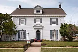 It was designed by local architect John T. Blair.[3] The structure is a two-story Colonial Revival house. It is T-shaped, has clapboard siding and a gabled roof with a dormer centered above the entry.[4]