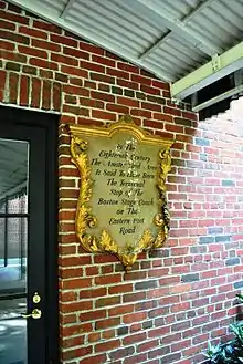 One of the apartments was Amster's home, which he decorated with Biedermeier furniture.[10] During the party hosted by Amster to inaugurate the Yard, Elsie de Wolfe, mentor to Amster, suggested that he put a mirror at one end of the Yard to give the impression that the Yard was bigger. Amster framed the mirror inside an arch, and the mirror remained in place in the yard through the 21st century.[3] In 1966, the New York City Landmarks Preservation Commission (LPC) designated the yard and its surrounding buildings as a city landmark, citing the yard's character and its history as a stagecoach stop.[11]