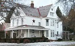 The Tannehill House is a weatherboarded building with a slate roof, a foundation of sandstone, and elements of brickwork. Featuring a large front gable, the house is three stories tall and has a large front porch.[2] It is one of the area's oldest Colonial Revival buildings, for that style was only beginning to become popular in 1892.[3]