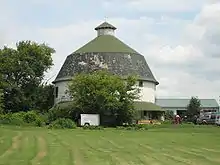 The James Bruce Round Barn is one of 31 round barns found in a four county area that includes Winnebago County, Stephenson County in Illinois, and Rock and Green Counties in Wisconsin. Twenty one of those barns are within Stephenson County.[2] The Bruce Round Barn was constructed in 1914 for James Bruce by Jeremiah Shaffer and the Haas Brothers.[3]