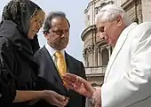 In 2002, on behalf of the U.S. State Department, Carville, and his wife, political consultant Mary Matalin, met with a group of 55 Arab women political leaders during the 2002 United States midterm elections. The programming, "Women as Political Leaders" International Visitor (IV) Program", was the first program implemented under the auspices of the Middle East Partnership Initiative, a collection of 40 programs headed by then deputy assistant secretary for Near East Affairs Liz Cheney.[80] In addition to events with Carville and Matalin, the group met with congressional, state and local campaign staff, and observed campaign work during their visits to Concord, New Hampshire, Dallas, Texas, Detroit, Michigan, Toledo, Ohio, Raleigh, North Carolina, and Tallahassee and Tampa, Florida.[81]