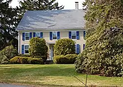 The James Friend House is a historic First Period house in Wenham, Massachusetts, United States. It was built by James Friend, a local carpenter, probably not long after he received a grant in 1699 to cut timber on public land. The house is a 2.5-story wood-frame house with a center chimney. Its main facade is a slightly asymmetrical five bays wide, even though it was apparently originally built to that plan rather than in stages. A lean-to was added to the back of the house sometime before 1738, giving the house a saltbox appearance. This section was raised to a full two stories in the 19th century, and the roof was rebuilt. In the early 20th century, the house was moved back from the road and covered in stucco.[2]