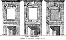 A list of the nearly 700 books in his library is preserved in the Bodleian Library.[26] While architecture and related crafts made up the bulk of his books, other subjects covered included antiquities, coins, and heraldry; histories of England, Scotland and Rome and other nations; literature including works by Alexander Pope, Jonathan Swift, Daniel Defoe and Matthew Prior; travel books including Egypt, the South Seas, Russia, Hungary, Lapland, Virginia, Ceylon and Abyssinia; missionary travels including China, Formosa, Guinea, Borneo and the East Indies; books on religion including both Anglican and Roman Catholic works; and even cookery books. The most significant of the architectural works were Vincenzo Scamozzi's L'Idea dell'Architettura Universale, Sebastiano Serlio's Sette Libri d'Architettura, Domenico Fontana's Della transportatione dell'obelisco Vaticano e delle fabriche di Sisto V, Colen Campbell's Vitruvius Britannicus, Giacomo Leoni's The Architecture of A. Palladio, in Four Books, William Kent's The Designs of Inigo Jones and Robert Wood's The ruins of Palmyra. Gibbs is also known to have owned at least 117 paintings, including works by Canaletto, Giovanni Paolo Panini, Sebastiano Ricci, Antoine Watteau and Willem van de Velde the Younger.[27] Sculptures owned by Gibbs included a bust of Flora by François Girardon, a bust of Matthew Prior by Antoine Coysevox and busts of Alexander Pope and Gibbs by Rysbrack.[27]